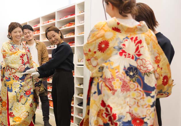 憧れの花嫁衣装の試着体験ができます。ブランド衣装やオリジナル衣装、人気のものから最新作まで、たくさんの衣装をご用意しています。